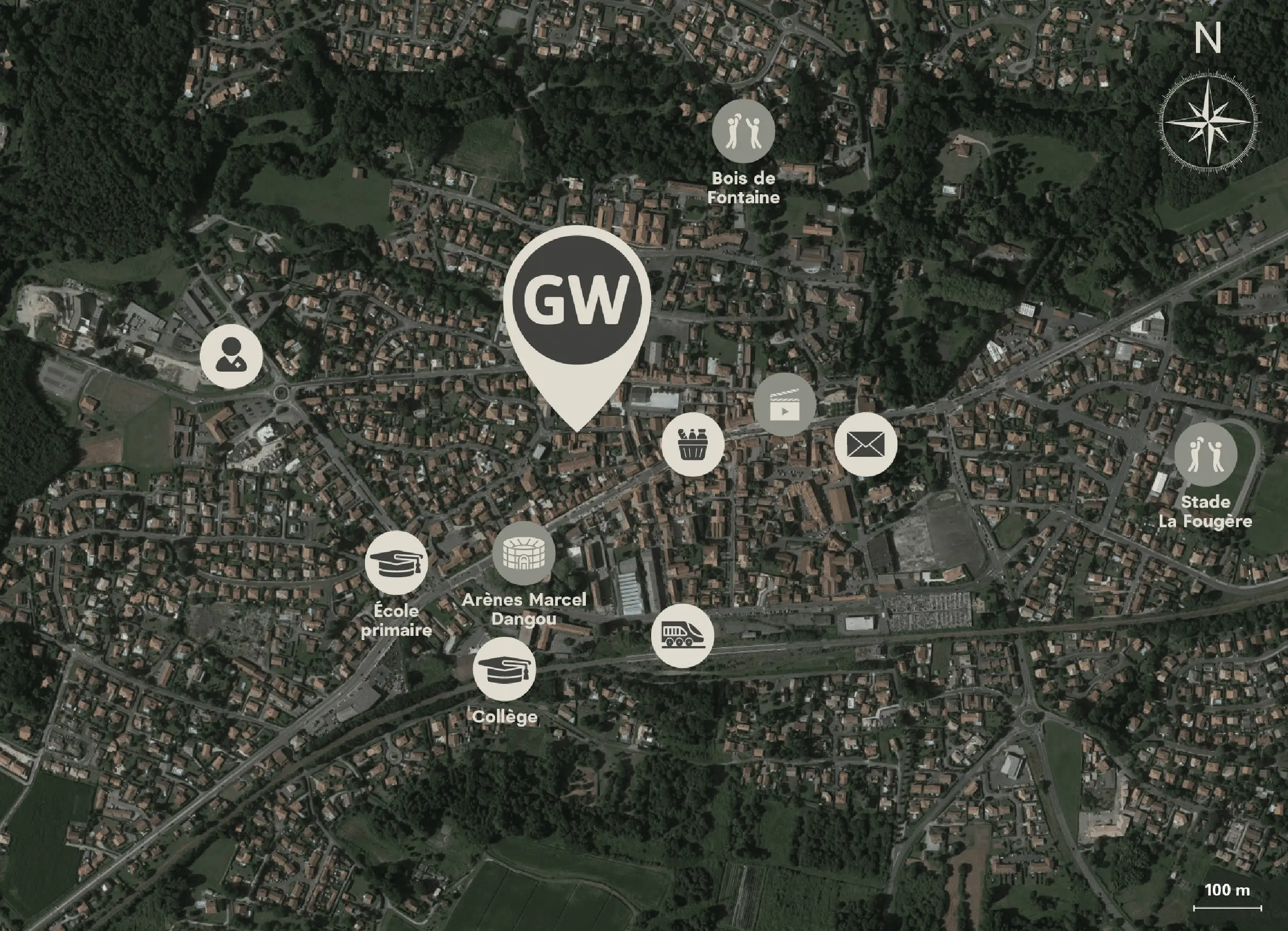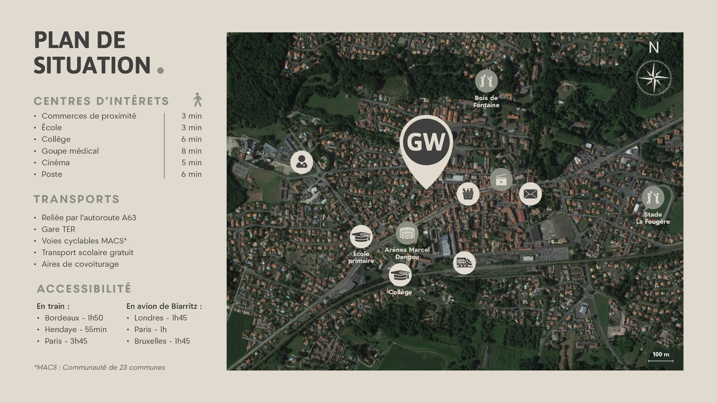 Située en plein cœur de Saint-Vincent-de-Tyrosse, elle offre le parfait équilibre entre sérénité et proximité.